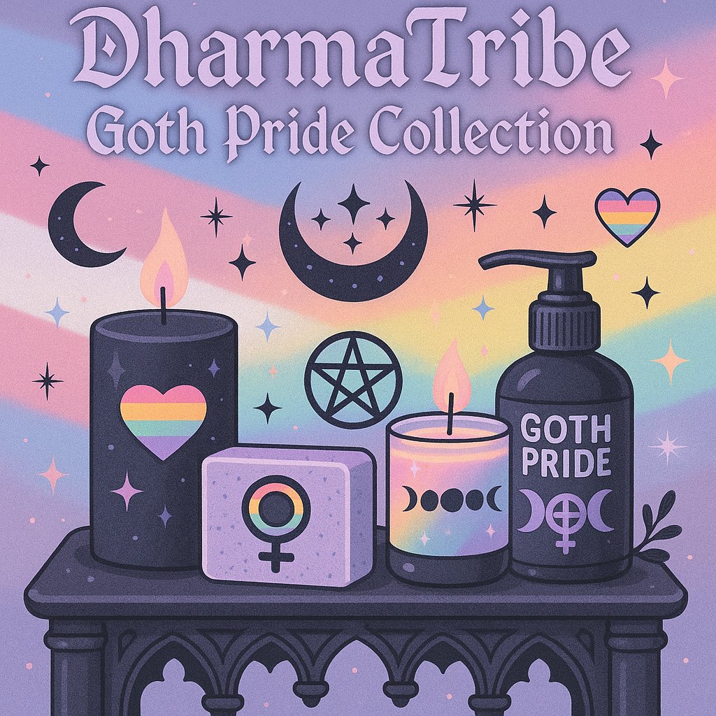 Celebrate every shade of your identity with DharmaTribe’s Goth Pride Collection. Inspired by the beauty of self-expression, this collection blends the soft mystique of pastel goth aesthetics with the vibrant power of pride. Featuring hand-poured candles, artisan soaps, and nourishing body creams, each piece is crafted with intention, magic, and inclusivity at heart.