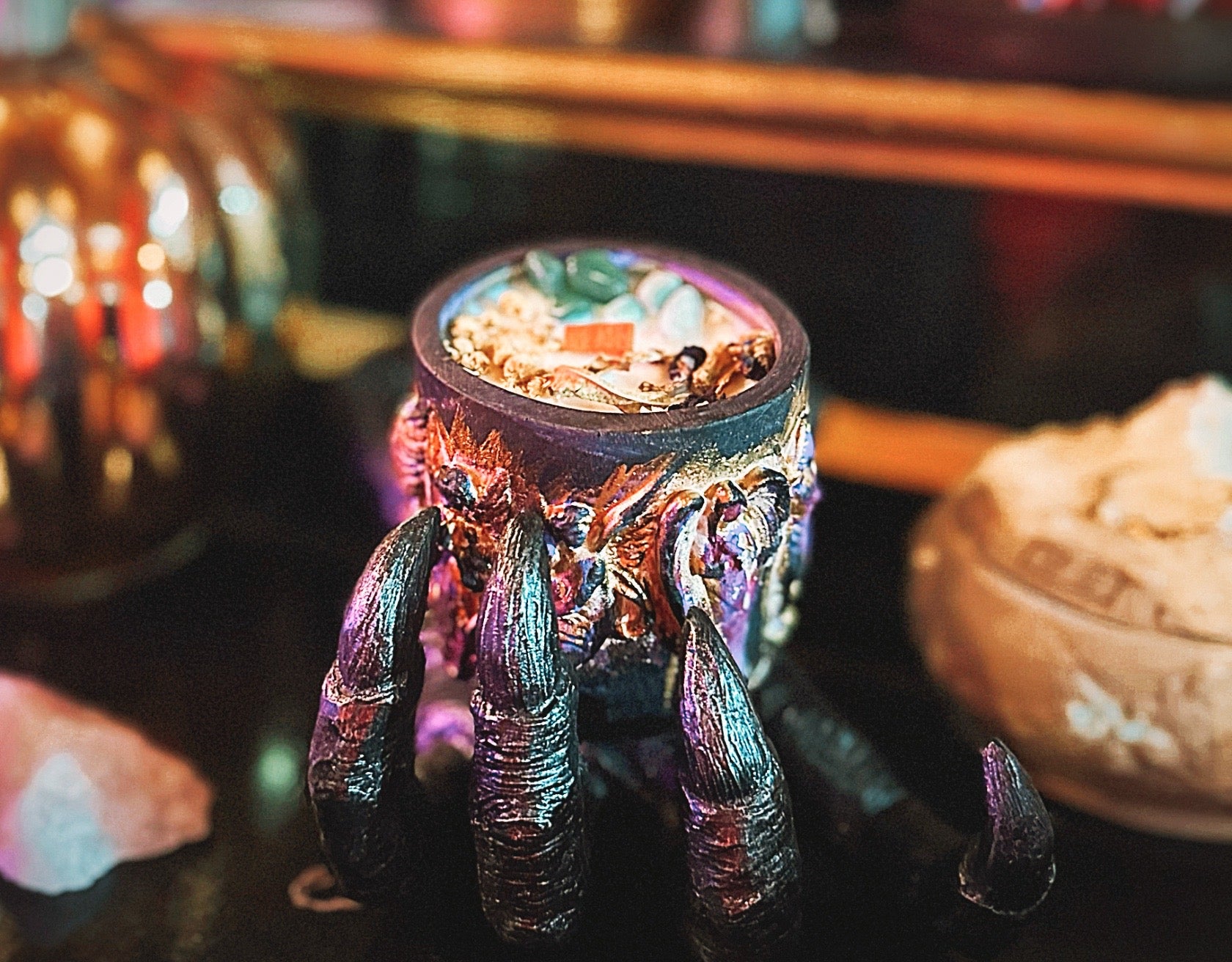 Archangel Gothic Bloom Candle, a divine creation designed to inspire heart healing and abundance. This exquisite candle is housed in a beautifully handmade and hand-painted pot, featuring intricate gothic motifs that add a touch of elegance and mystery to your space.